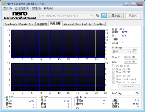 一张没有完成的品质测试图 在Nero CD-DVD Speed里面的光盘质量选项里我们发现,之前的PI错误和PI失败已经变成了LDC和BIS,不过光盘品质测试的“速度”已经远远超过了笔者的想像,平均1分钟仅为6MB左右,这里因为时间的关系我们实在没有勇气把品质测试做完,有条件的朋友可以试试,也可以把最终的结果反馈给我们。目前关于蓝光光盘的品质测试仍然处于初级发展阶段,众多的bug需要我们挑出来,想要完美测试可能还要等上一段时间。 ● 编辑总结: 美中不足! 明基第一代蓝光刻录机BW1000给我们留下了太多的印象, 业界首款先锋BDR-101A的各种不完善在它的身上已经荡然无存,CD/DVD/BD的全兼容、无需风扇散热、更高的DVD刻录速度以及萨利刀技术的传承等等……也正是因为这样我们对明基第二代蓝光刻录机BW1001给予太多的期望,不能实现4倍速超刻则是这台刻录机最大的遗憾。 虽然有不足,但是明基BW1001仍然让我们心动,更加快速的读取速度、更加便宜的市场售价,越来越多越的蓝光电影、即将到来的“高清”奥运会,这些都是我们拥有一台蓝光刻录机最好的理由。 |