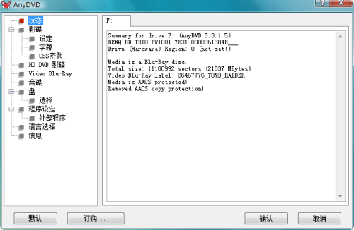 点击放大查看 试想一下,如果你急切的想要看一部高清电影,却发现你的电脑仅有一个配件不支持HDCP功能,那么你该如何办呢?AnyDVD HD可以“破解”AACS保护,即便是你的电脑不支持任何HDCP,也一样可以播放蓝光电影。 当然AnyDVD HD还可以备份你的正版蓝光电影。《如何备份蓝光电影?其实一切非常简单》友情提示,备份自己的正版电影被不算是犯法,但涉及商业行为,你就要小心了……