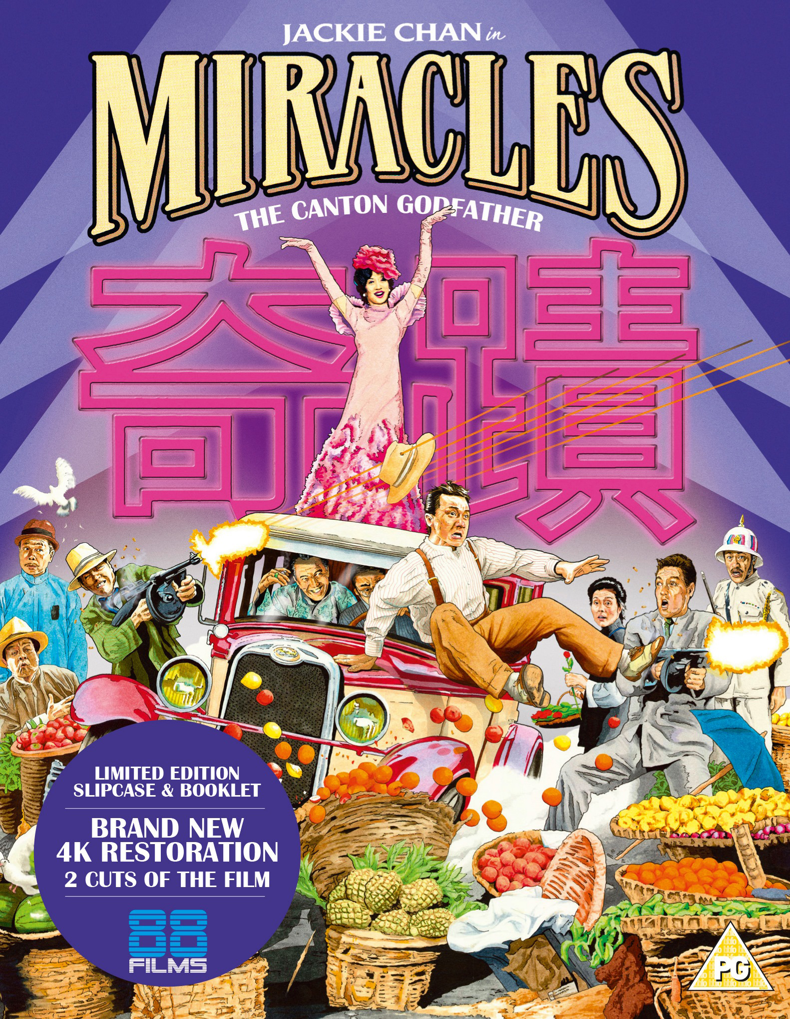 • Brand-new 4K restorations of the Original Hong Kong cut (Mr Canton & Lady Rose - 127 mins) and the International cut (Miracles aka Black Dragon - 107 mins) in original 2.35:1 Aspect Ratio