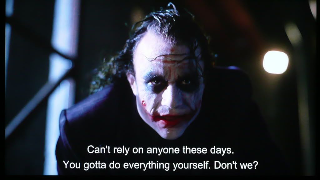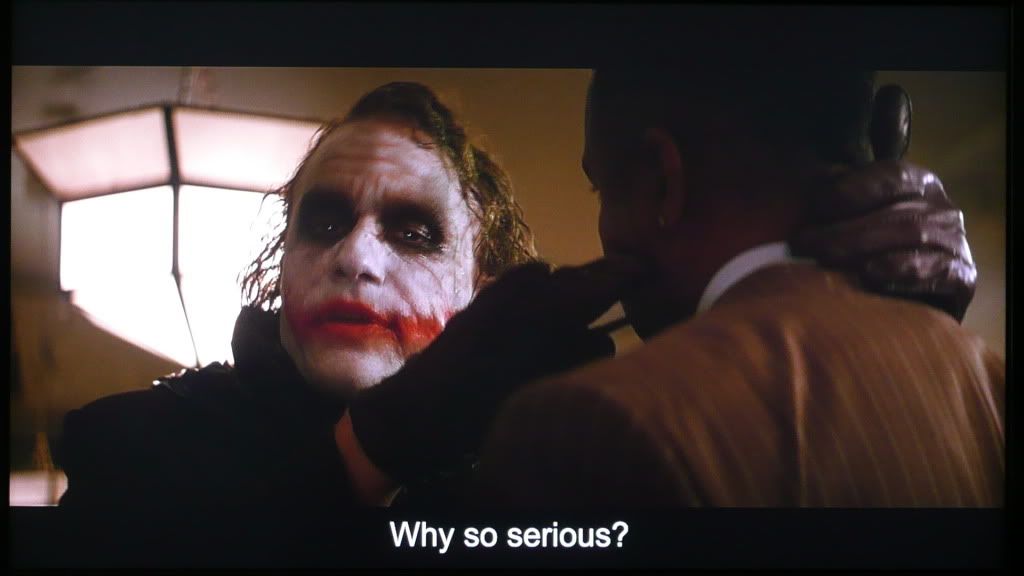 看了LZ的标题,我想起来我的一个同学看了此片之后,在他的博客上写了篇文章,文中就说看完片子之后印象最深、在大脑里挥之不去的就是小丑的这句:Why so serious?